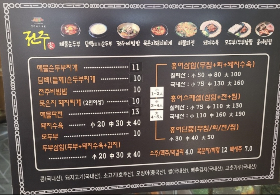 뭐 어떤가요? 다그 맛이 그 맛이겠죠!경주 "전주가" 순두부찌개 식당