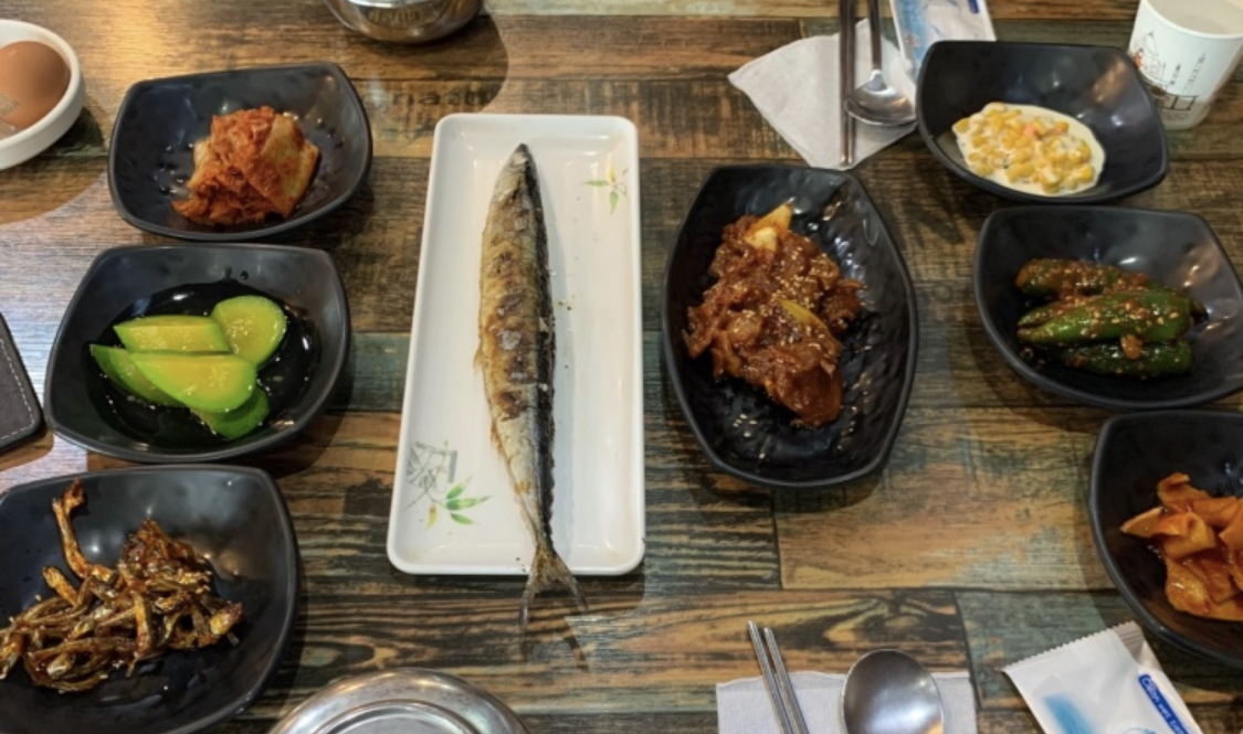 반찬사진 요렇게 꽁치도 한 마리 주시더라고요