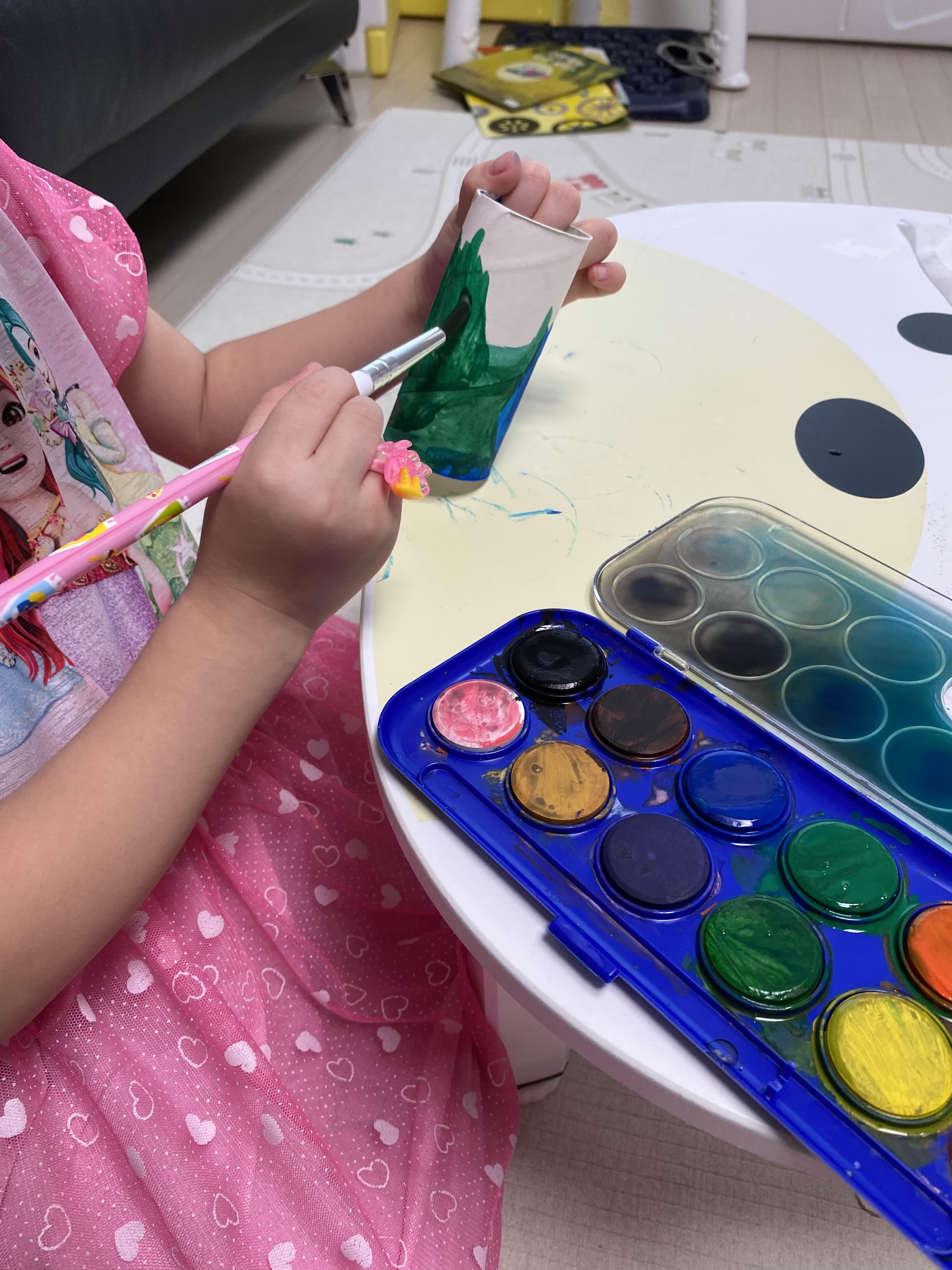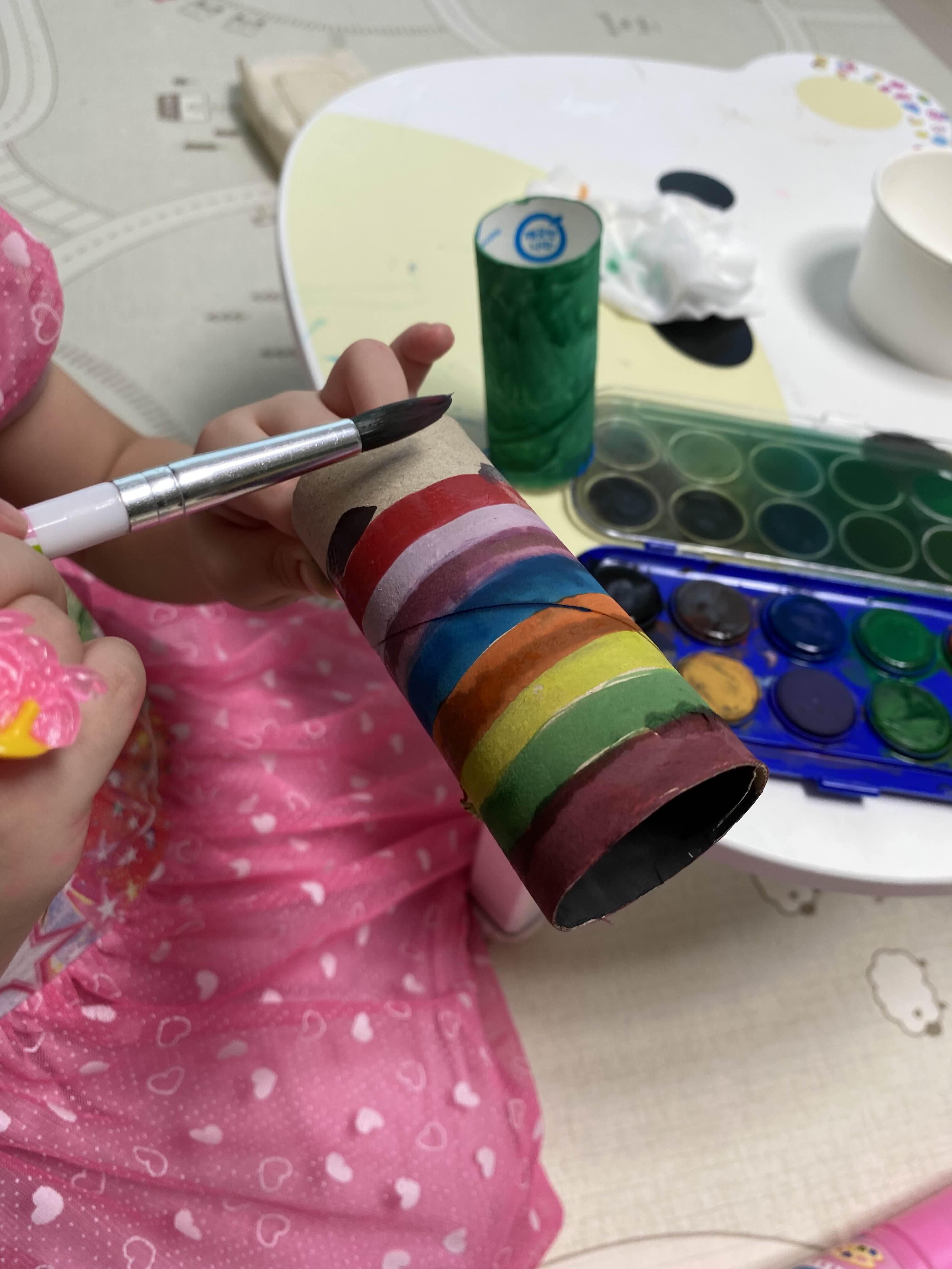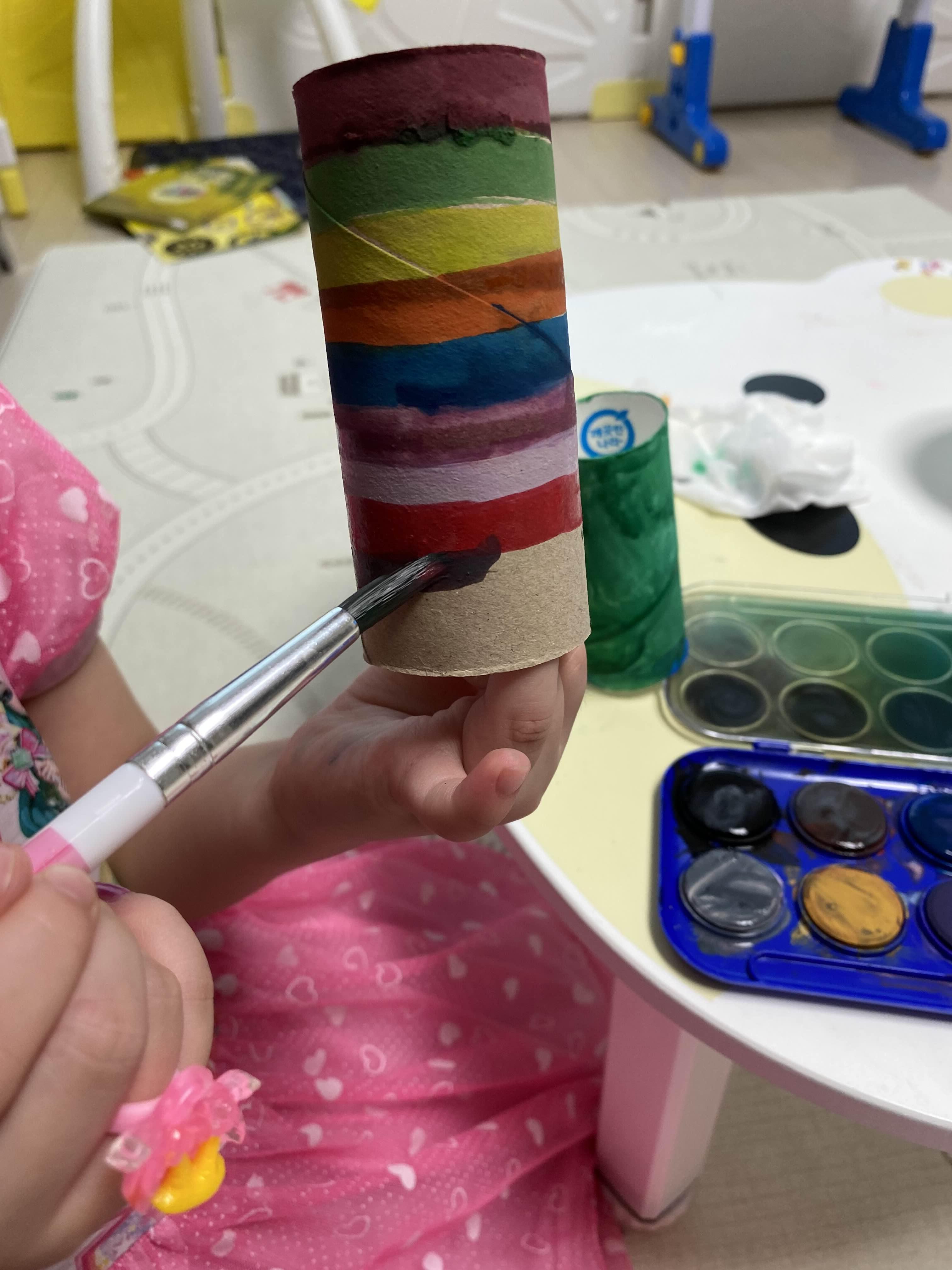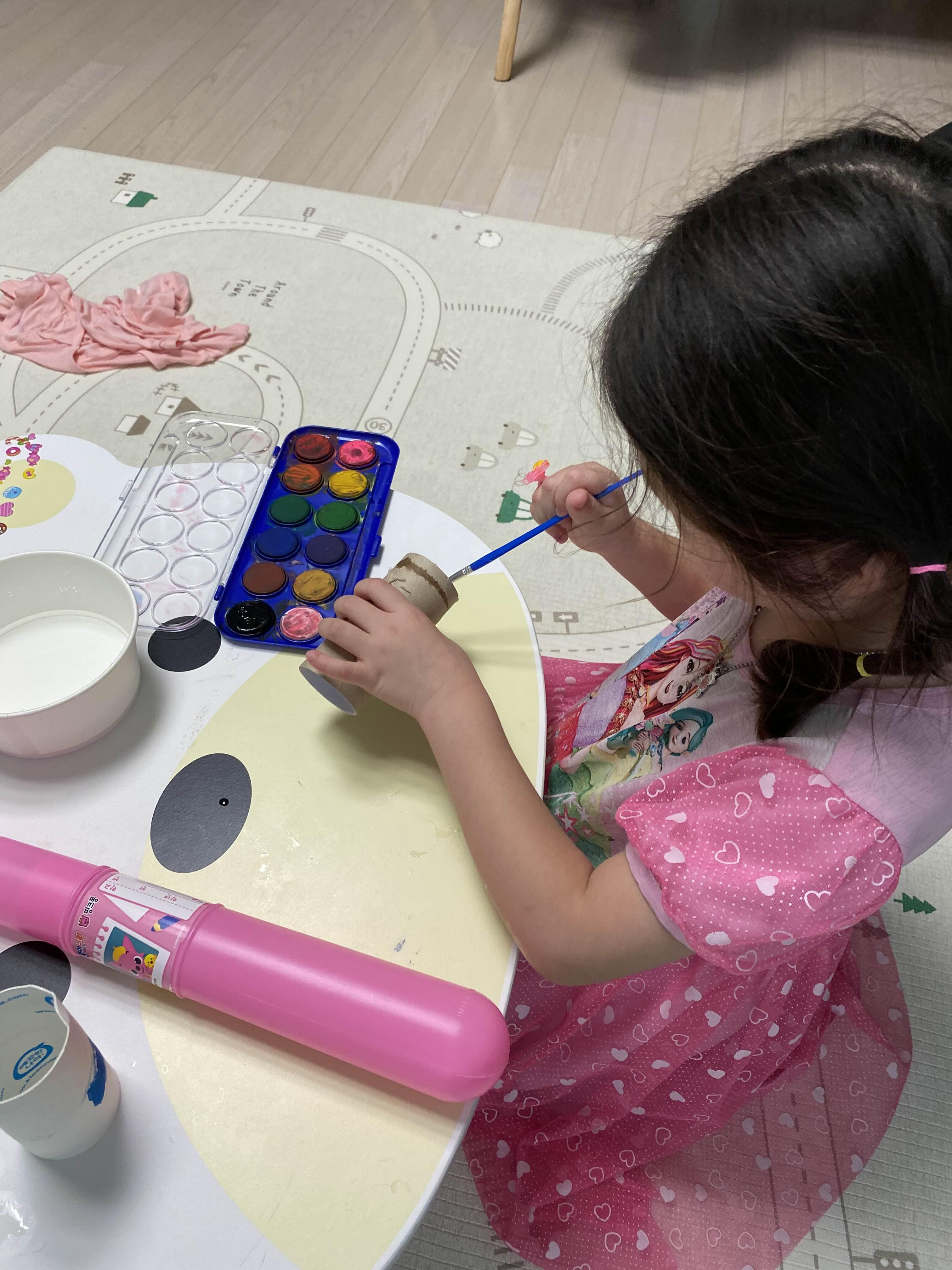 아빠가 색칠한 휴지심 저는 옆에서 야금야금 열심히 색칠을 했습니다.