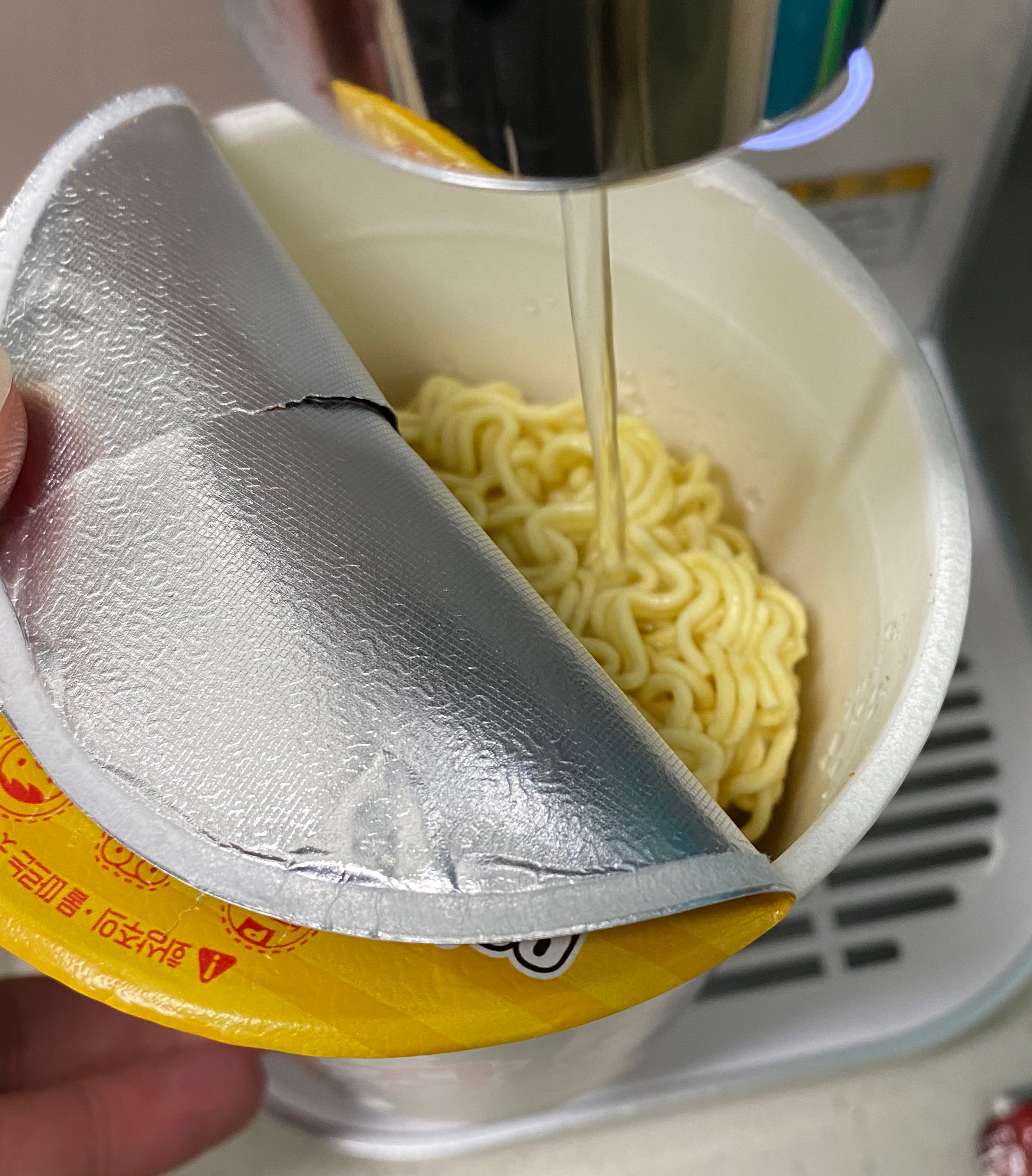뜨거운물 물 넣고 4분 타이머로 기다려줍니다.