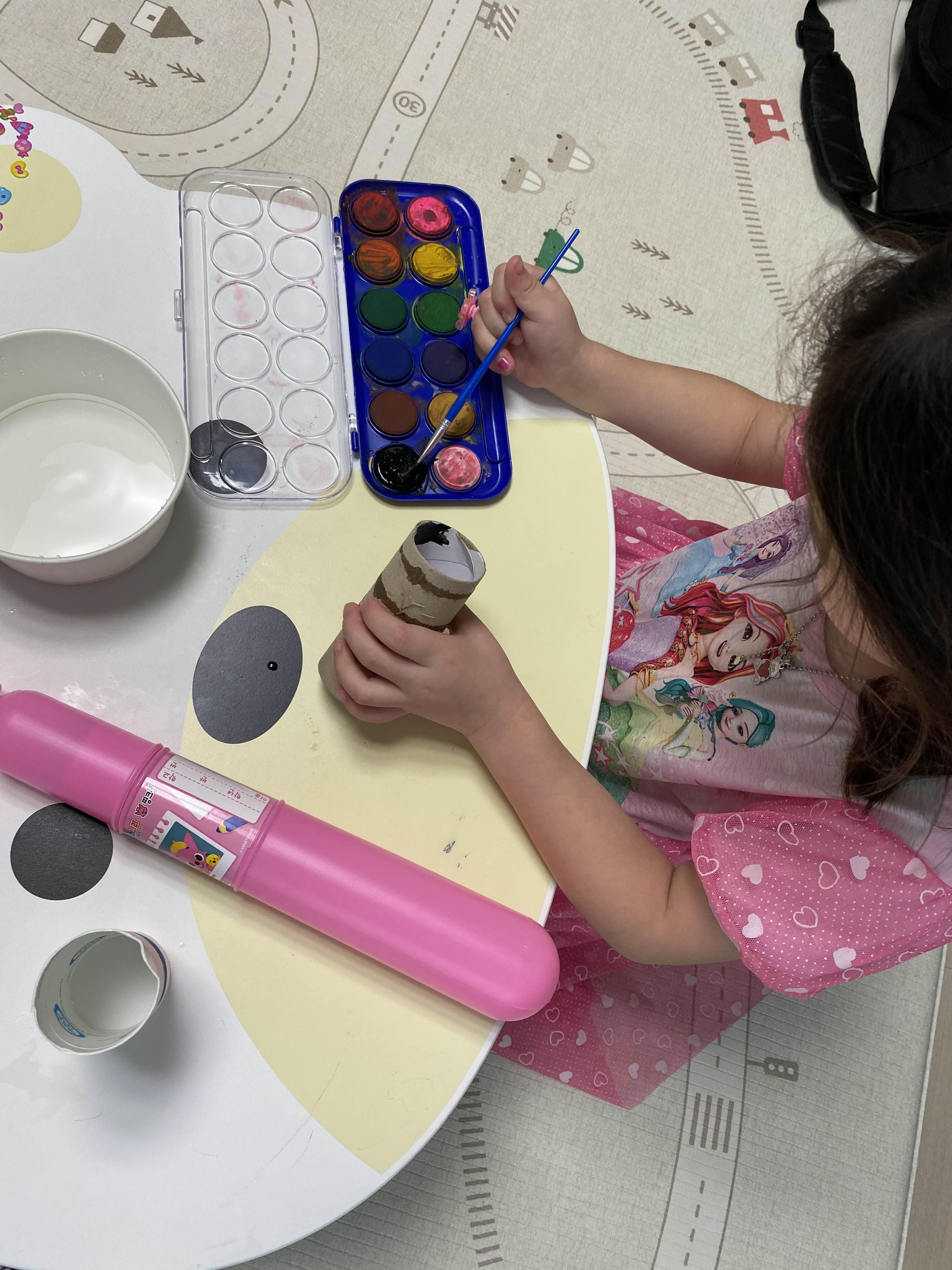 색칠하는 딸 우리 딸은 이제 휴지심 안쪽에 색칠을 하네요.
