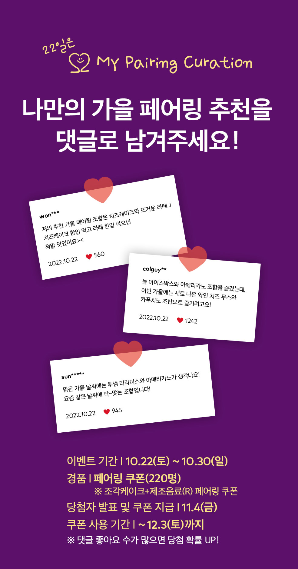 - 나만의 가을 페어링 추천을 댓글로 남기는 댓글 이벤트