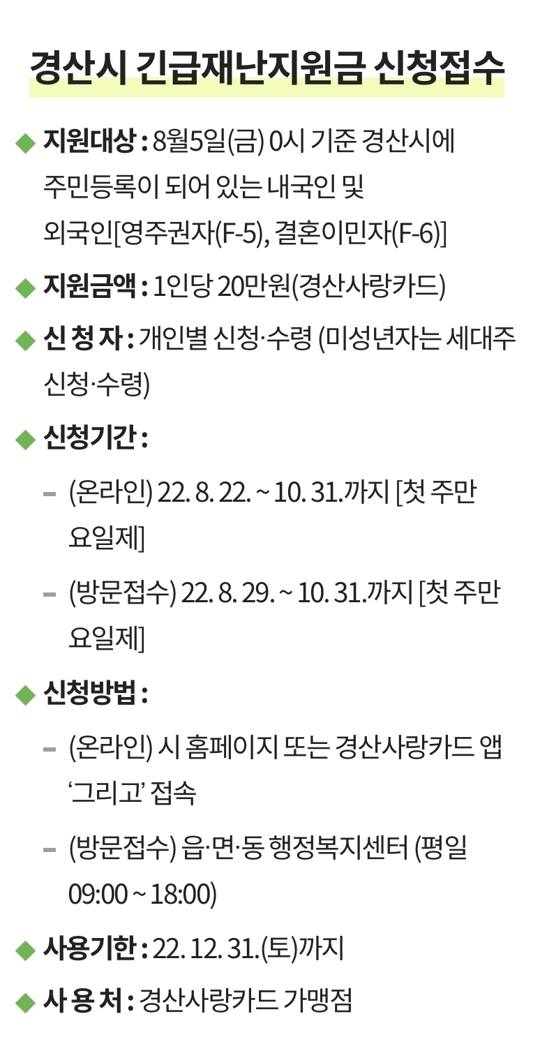 오늘은 경북 "경산시"에 서류상 거주하시는 분이라면 남녀노소 어른 아이 상관없이 1인당 "20만 원"을 무조건 받을 수 있는 "경산시 긴급 재난지원금 받는 방법"에 대해 알려드리겠습니다!!