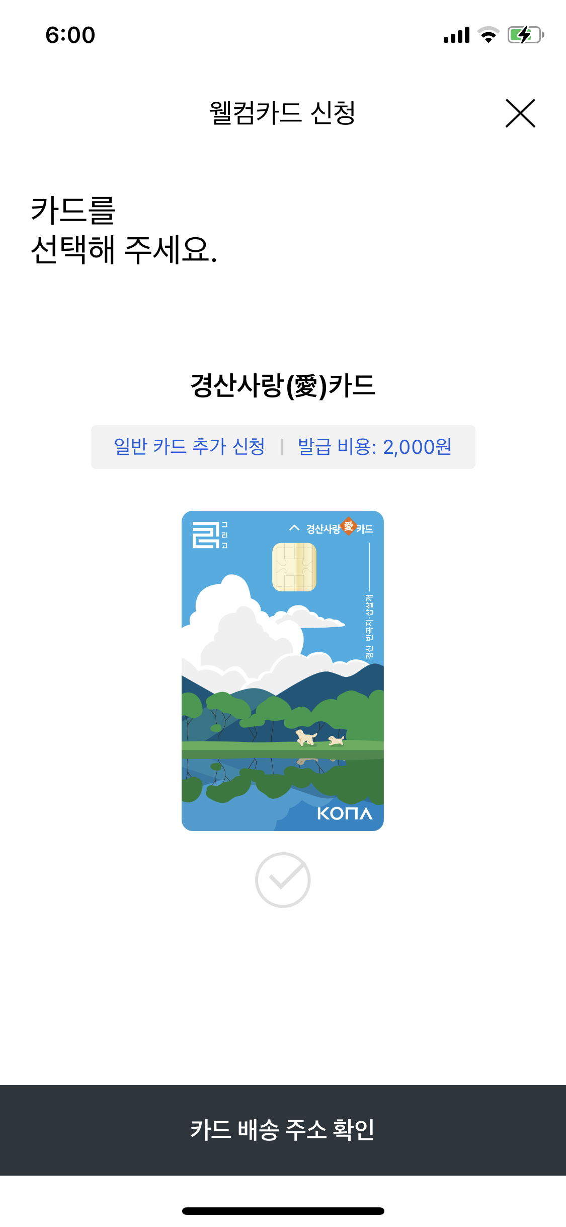 그리고 어플에 들어가면 가장 먼저 "사랑애"카드를 신청하고 어플에 등록을 해주셔야 하는데요